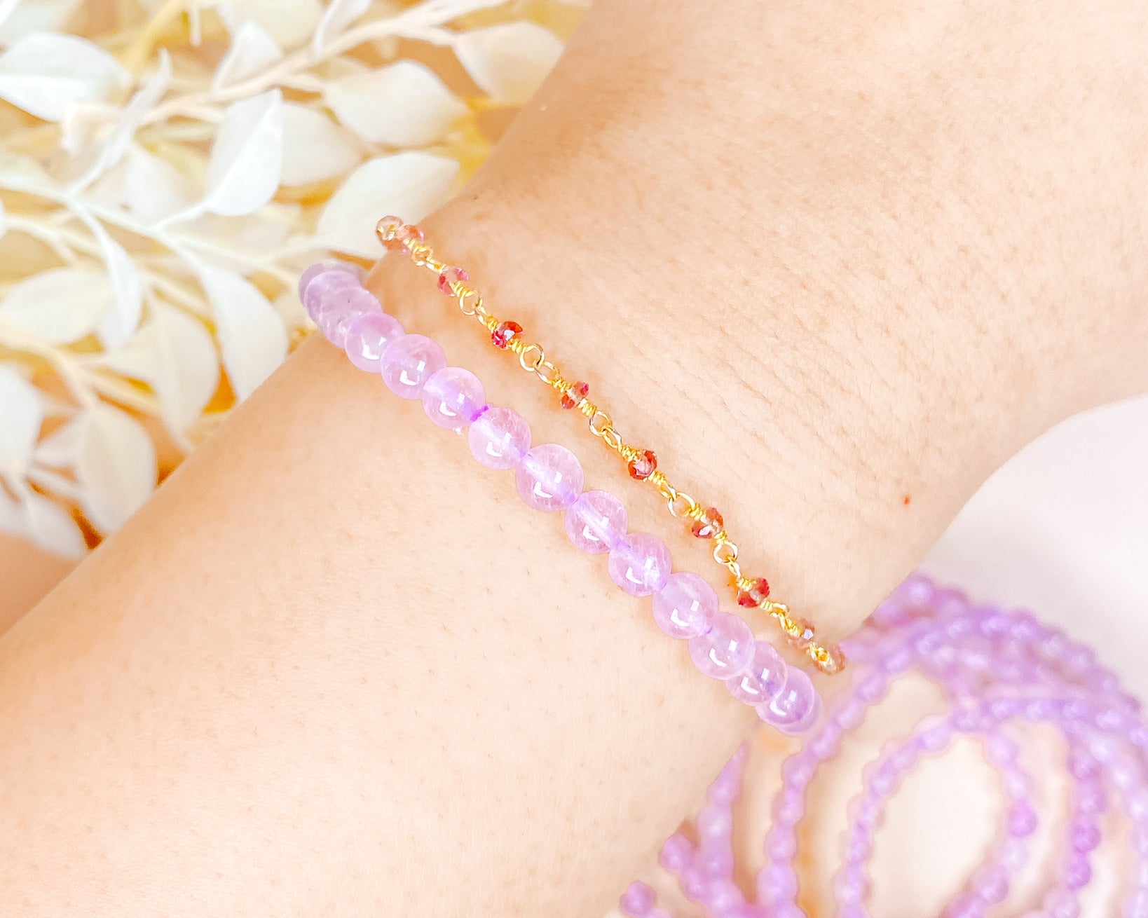 ⟡ Our HQ, Lilac Amethyst Bracelets feature pastel shades of icy Amethyst which is extremely rare and hard to come by. Ya'll know how much we love our pastel crystals and these lilac, dainty bracelets are perfectly on brand for us!