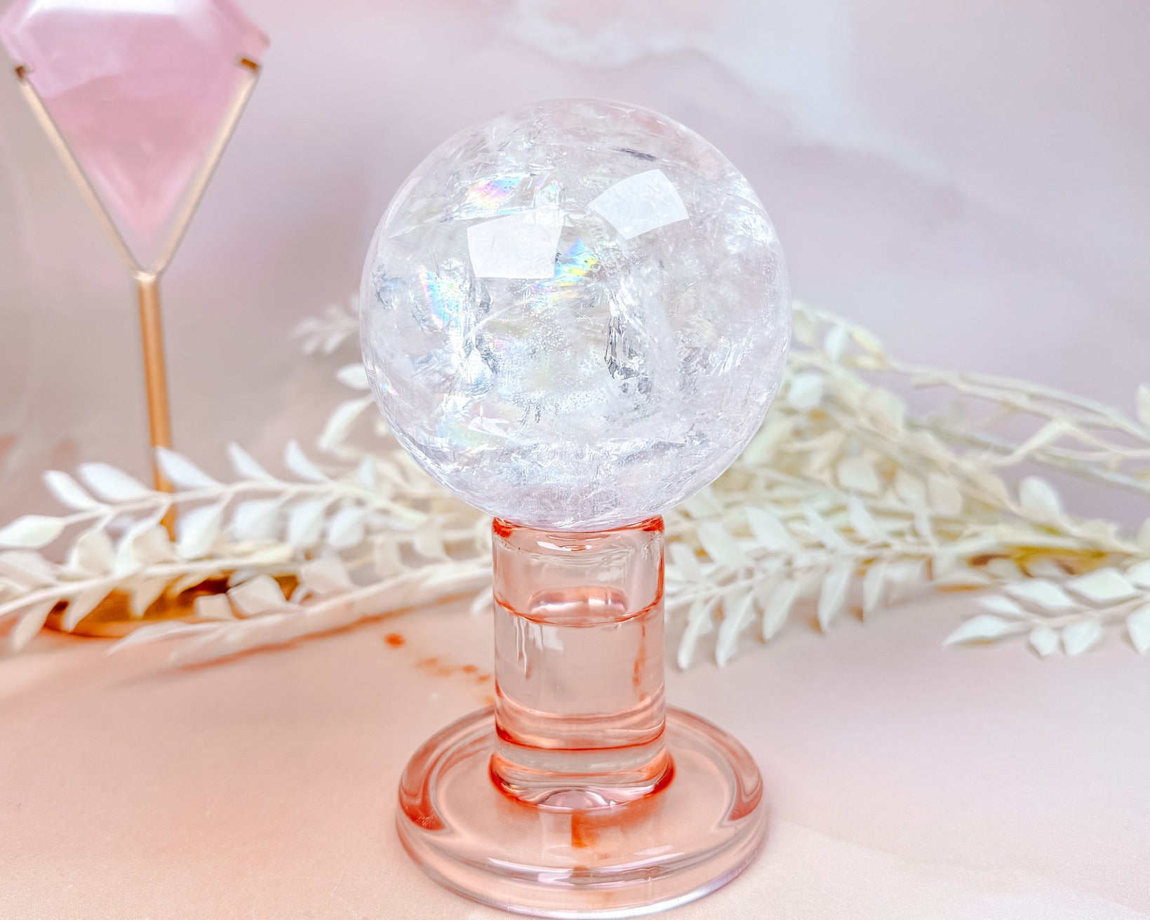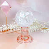 ⟡ Our "Strawberry Jelly" Pink Glass Sphere Stands remind us of strawberry jello because of the shades of pink and the clarity! We love the simple, minimalistic design of these stands, making it easy to pair with any sphere in your collection!