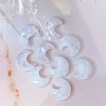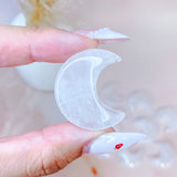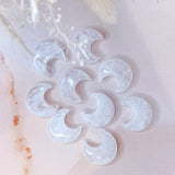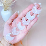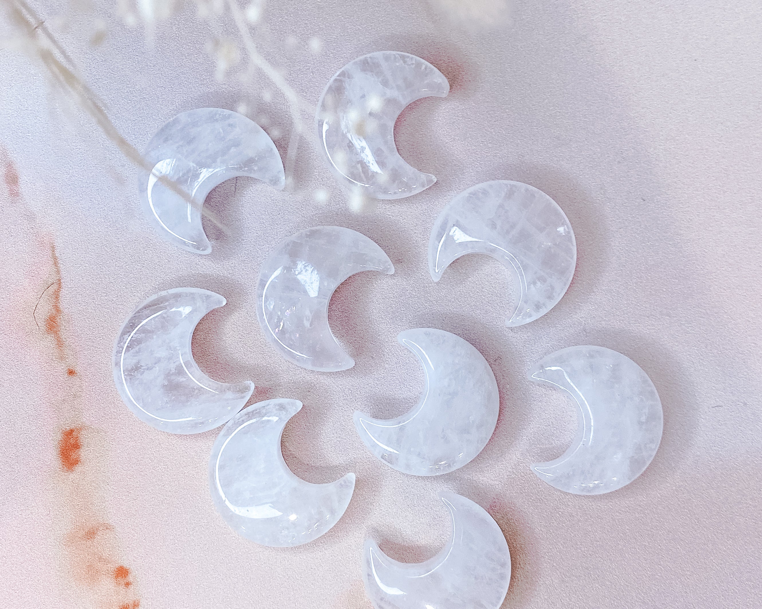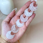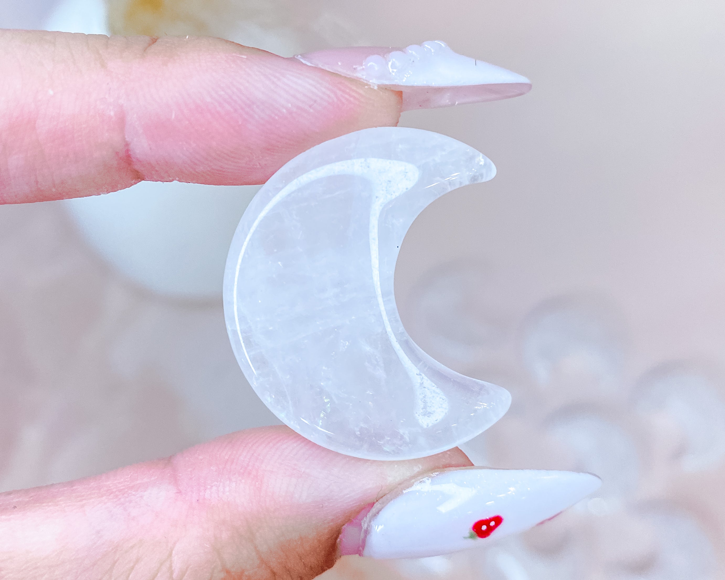 ⟡ We sourced our Mini Clear Quartz Moon carvings in person and hand chose the clearest, iciest ones we could find. Some of these moons even have mini hidden rainbows and some have such pretty, shimmery sheen! Crescent moon carvings symbolize tranquility and protection, making them one of our favorite shapes to work with. We love the strong feminine energy they carry, making them amazing tools for full moon rituals and spiritual work.