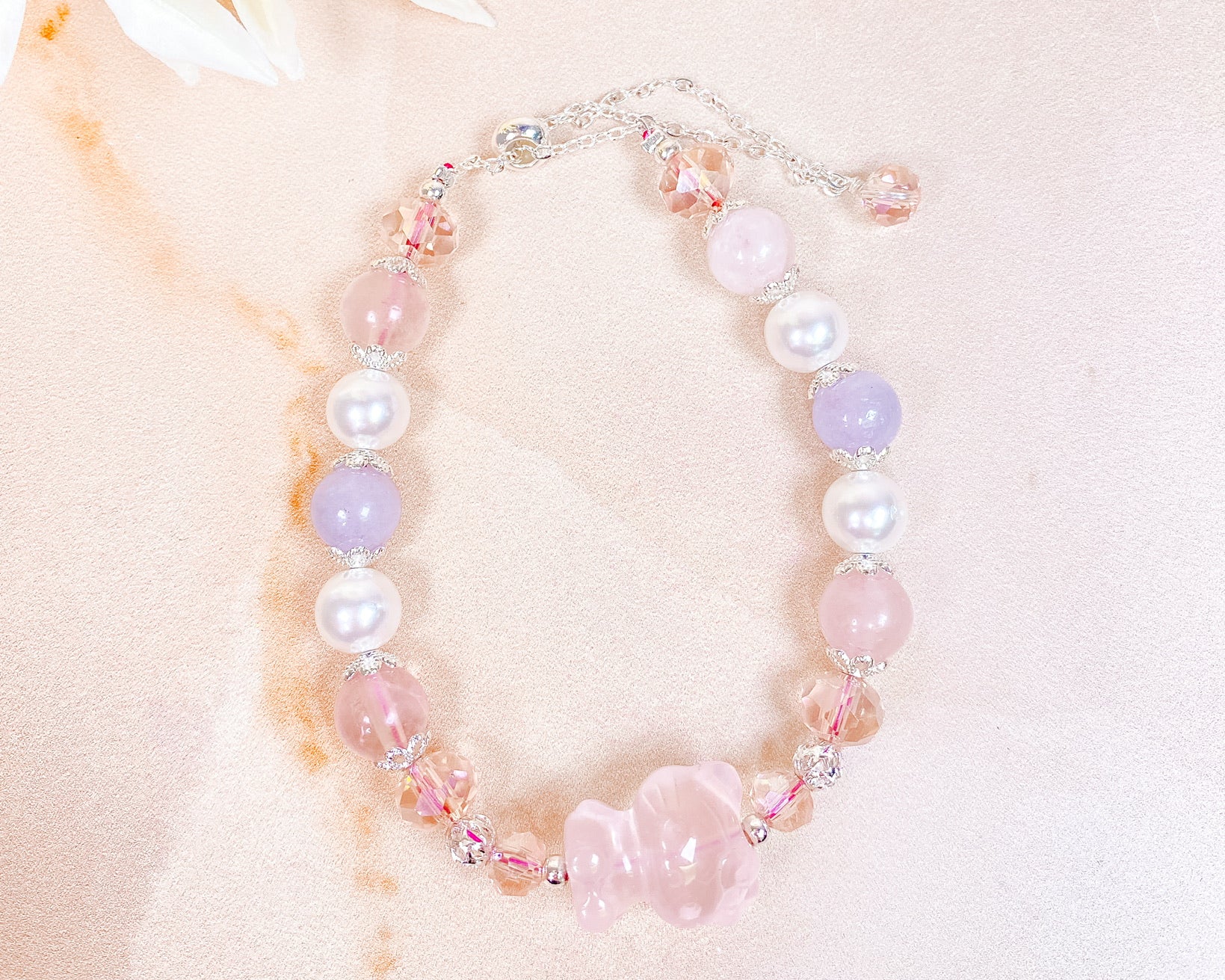 "Hello Kitty" Rose Quartz x Blue Chalcedony Bracelet