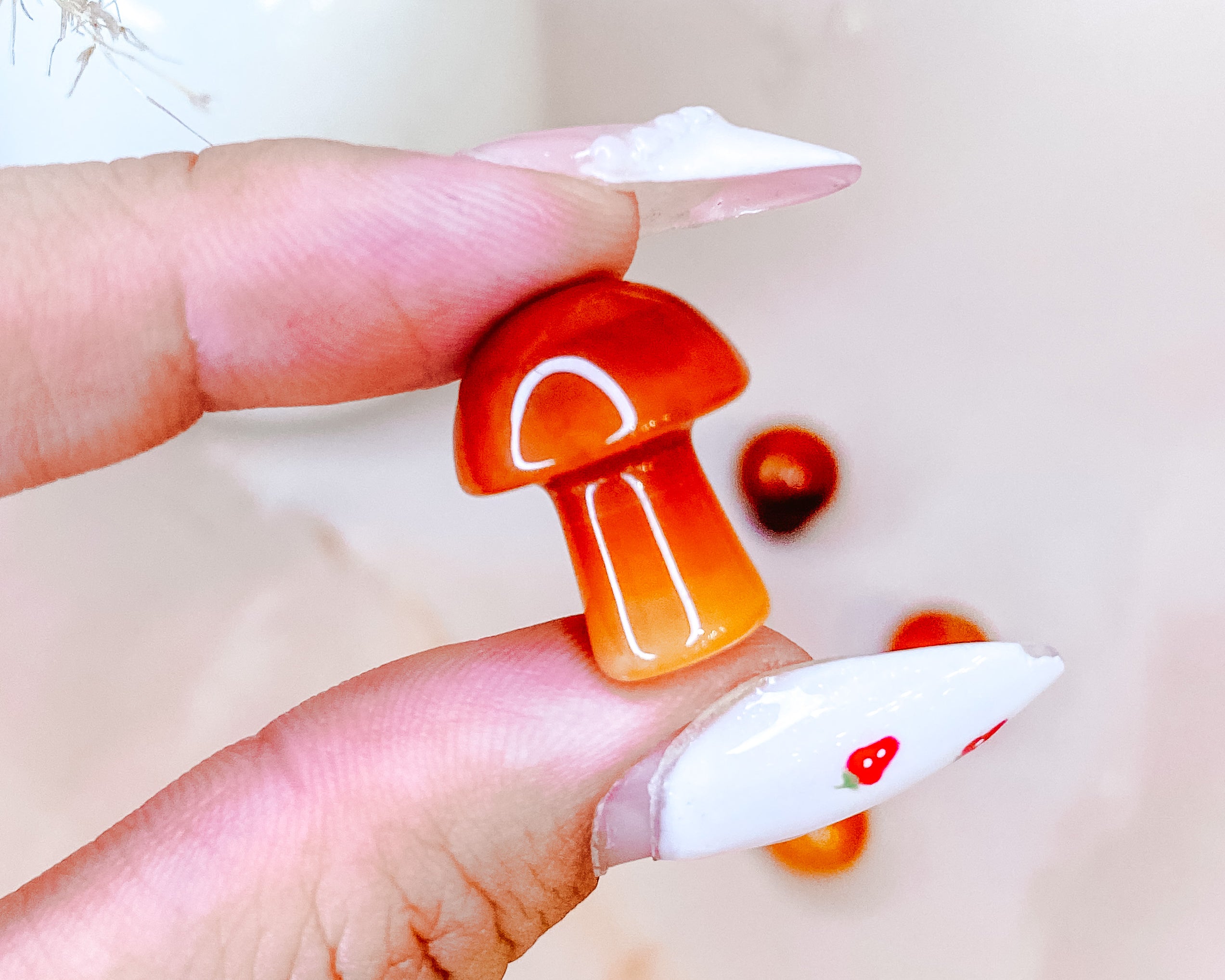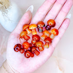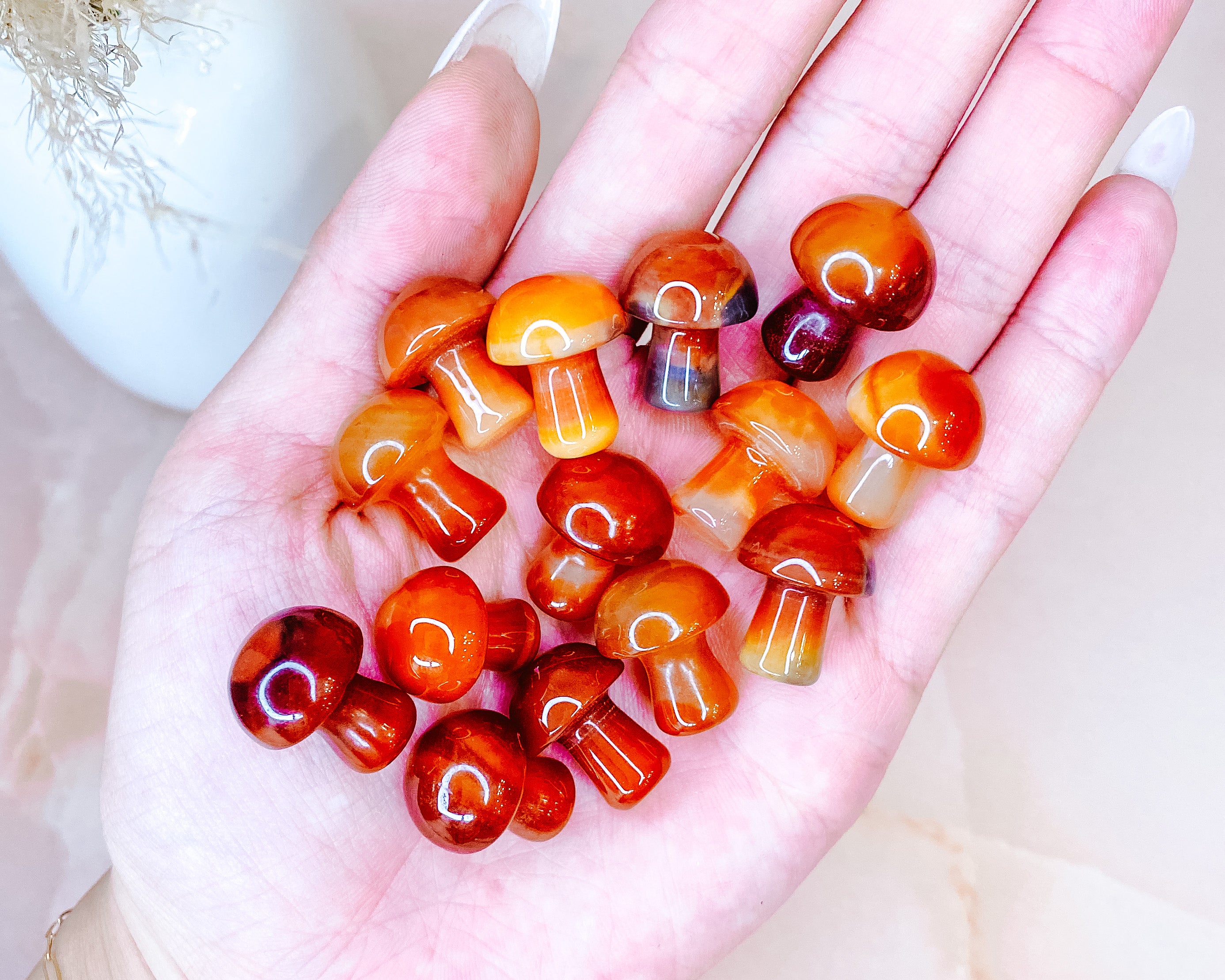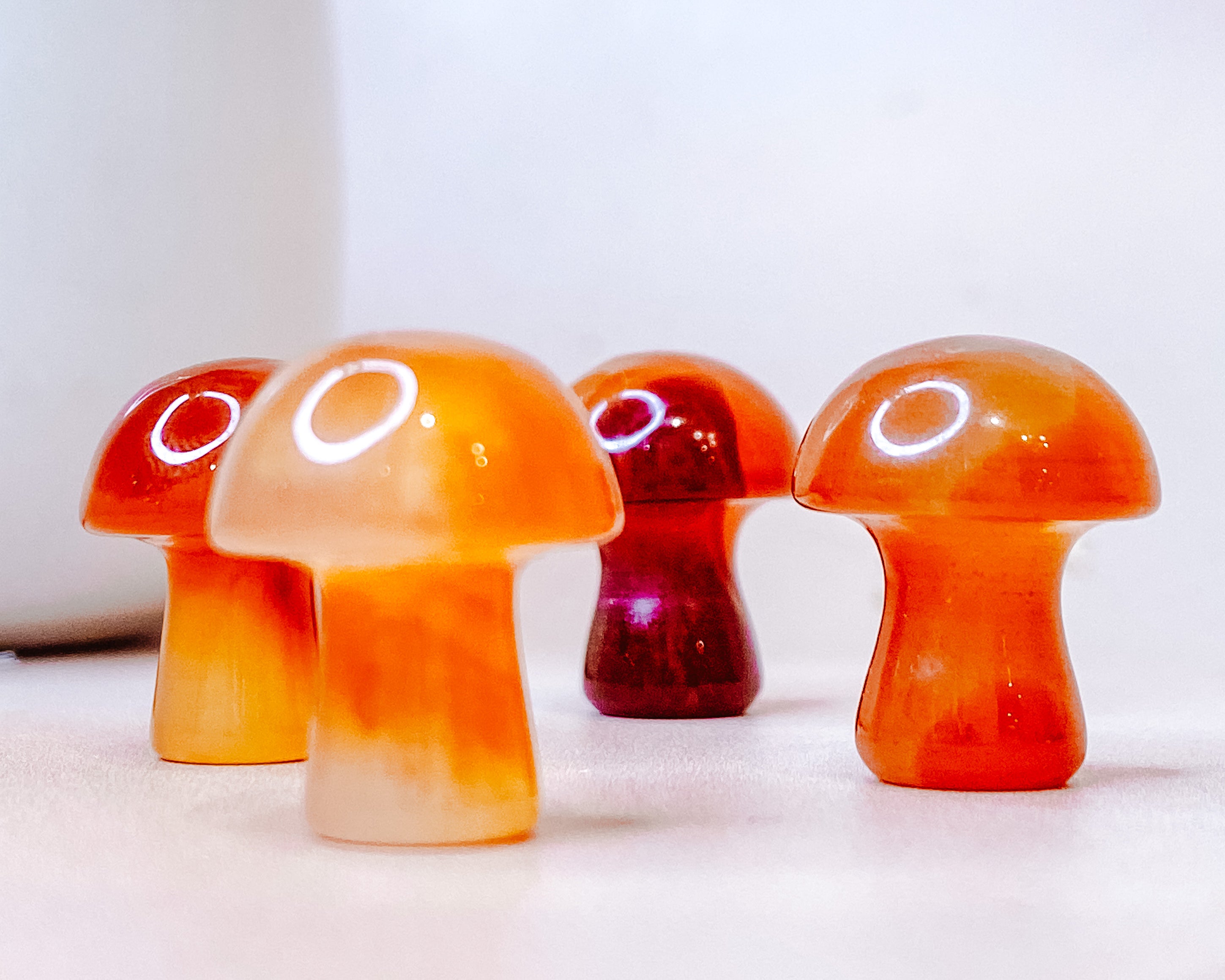 ⟡ Our Mini Carnelian Mushrooms would make the cutest little addition to any crystal collection whether you are a beginner or avid collector. These mini mushrooms even self stand on their own! Mushroom crystal carvings are known to be a symbol of enlightenment, good luck and fortune. These mini carvings make the perfect pocket pieces to give you a boost of confidence wherever you go!