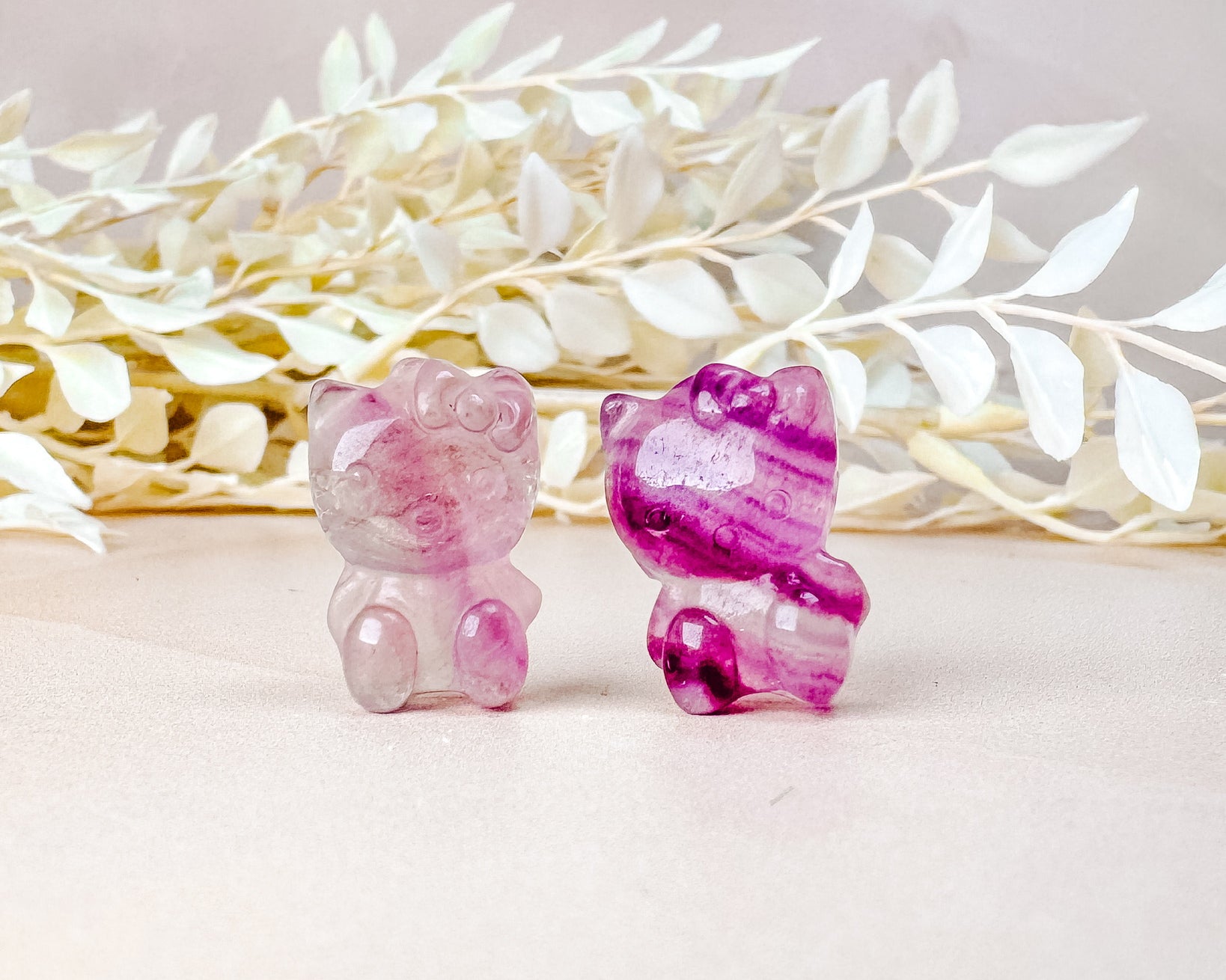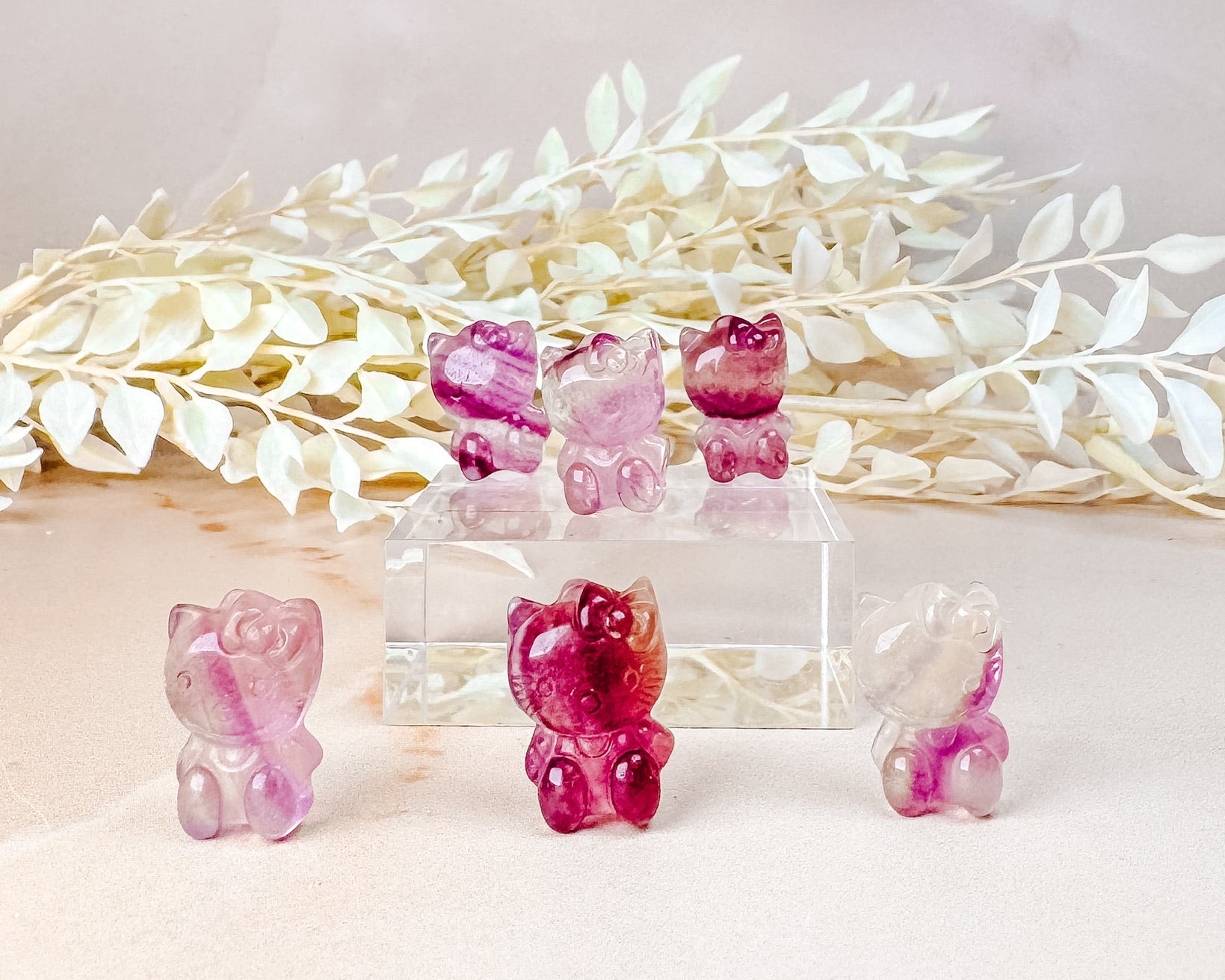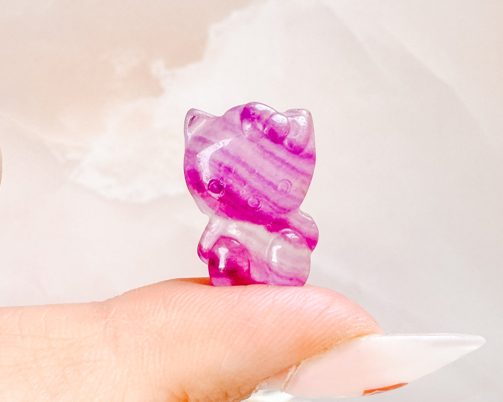 ⟡ We're obsessed with these mini Rainbow Fluorite Hello Kitty carvings! These mini Hello Kitties would be the cutest addition to any carving collection & remind us of little gummy candies. They are so colorful and range in colors from magenta, purple, mint green, orange and yellow!