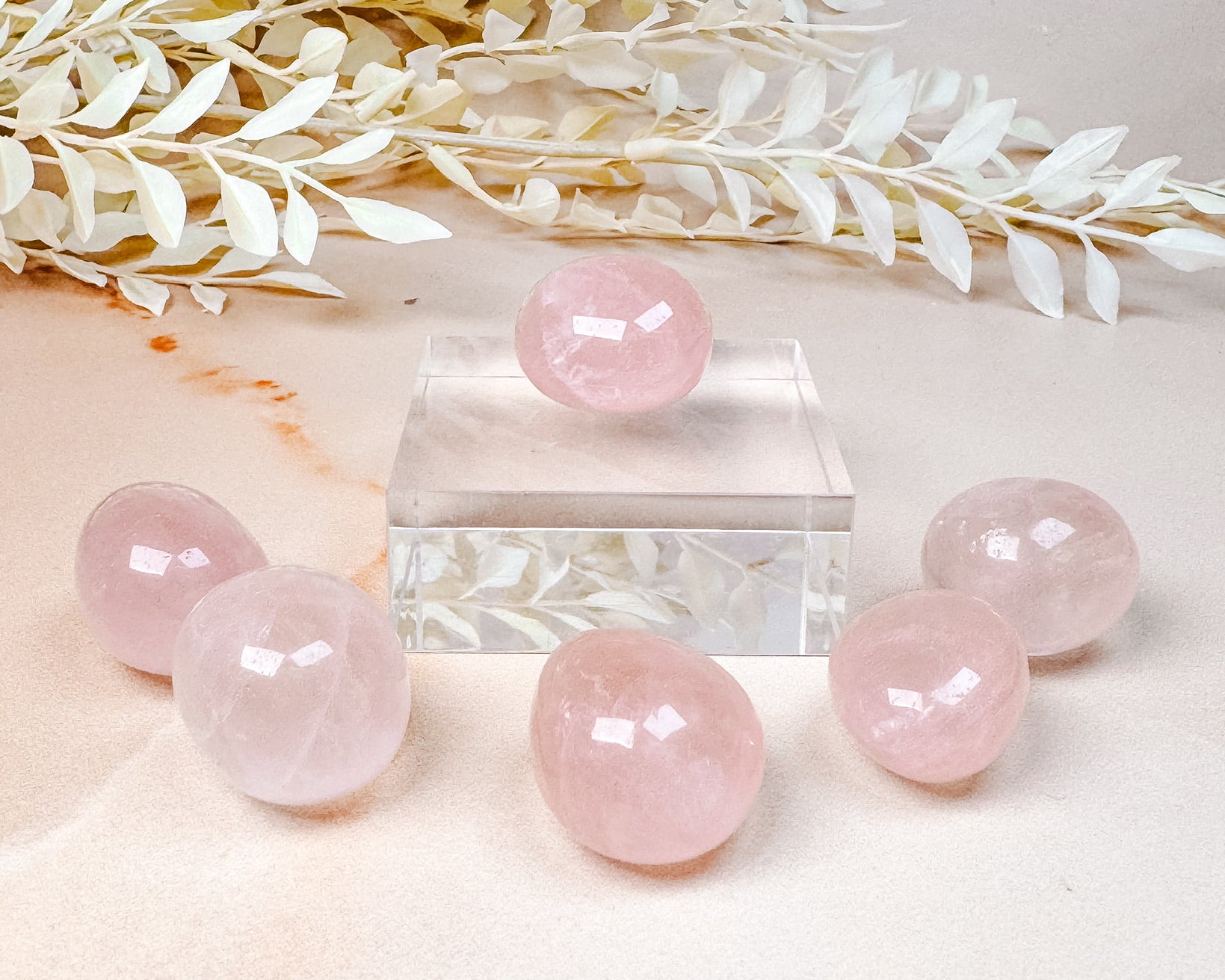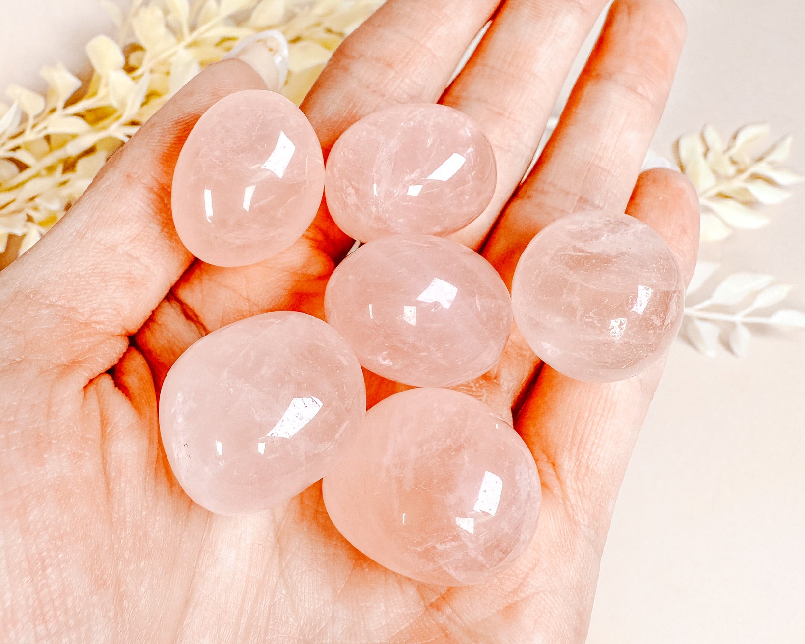 ⟡ We hand-picked each and every one of these top quality juicy star Rose Quartz tumbles. We made sure to choose a variety of shades and found some with rainbows! These babies literally glow, the quality and polish on these tumbles are insane!