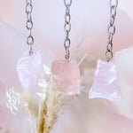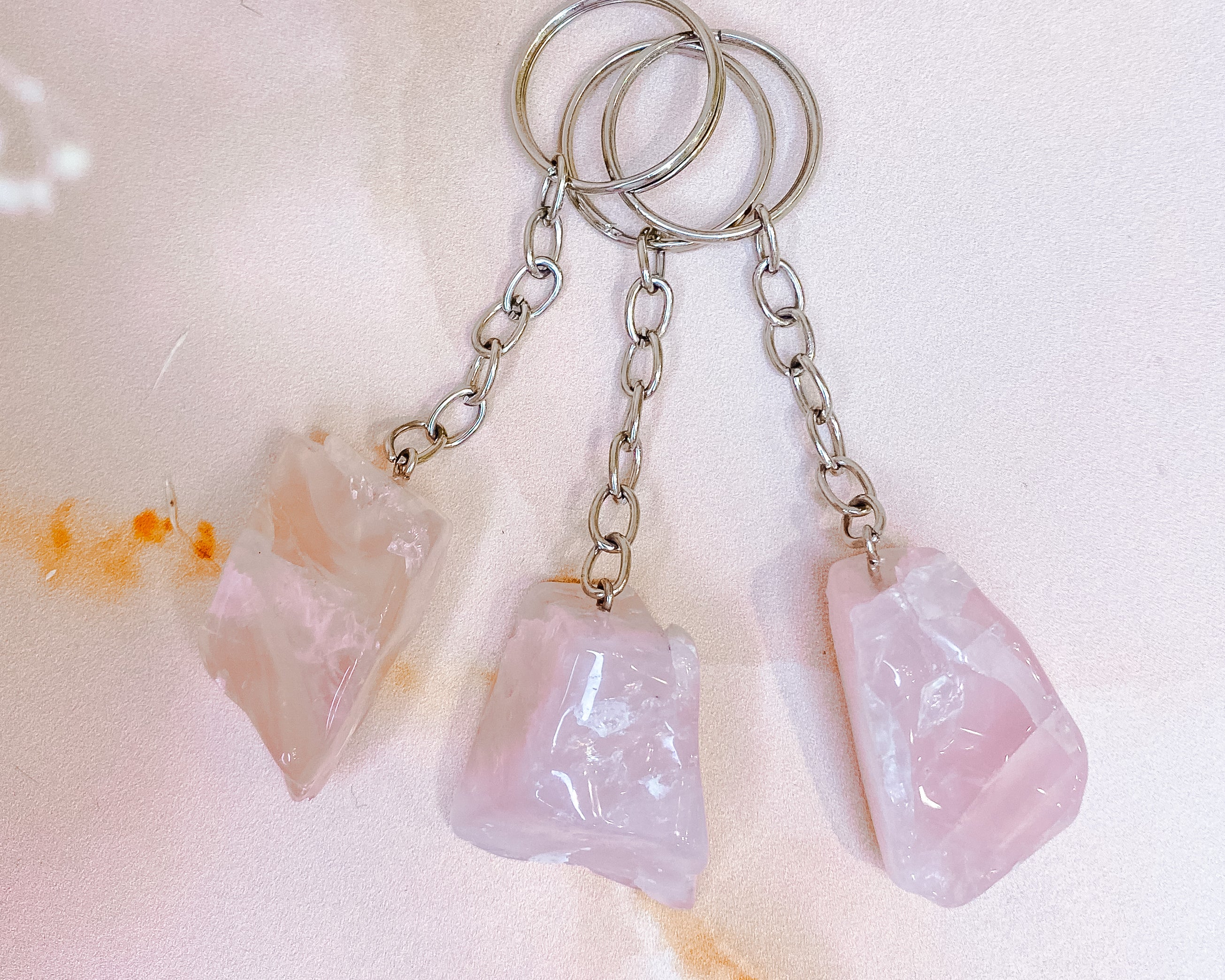 ⟡ Our Rose Quartz keychains from Brazil feature a polished raw chunk of Rose Quartz attached to a silver keychain. These adorable keychains are such a perfect accessory for any set of keys, or even a backpack or purse!