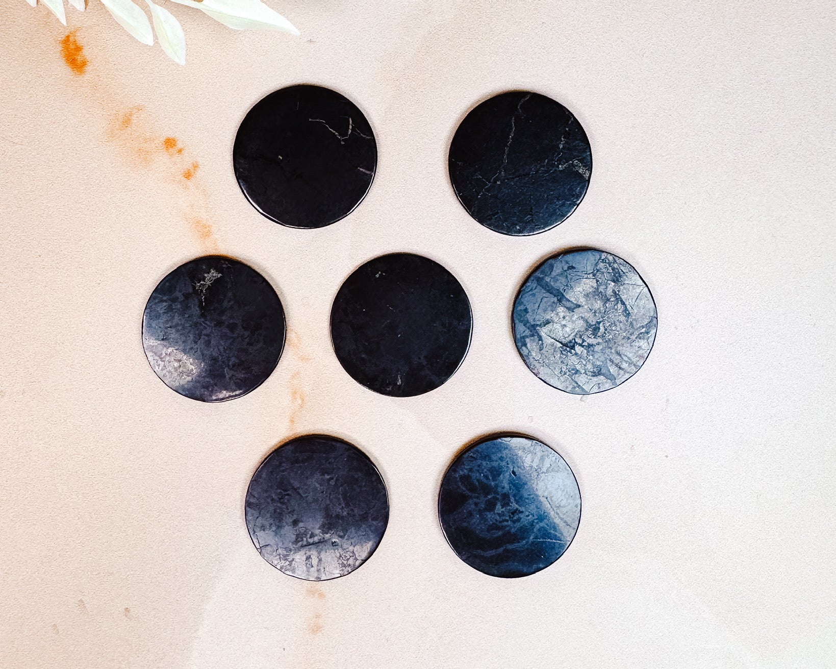 ⟡ Protect yourself from harmful EMF radiation with our Shungite Circle Phone Sticker! Made with real shungite, this powerful little sticker harnesses the natural protective properties of the stone to shield your phone from EMF radiation. Although we have not done research on our own, there are many studies, books and videos about how Shungite can protect you from radiation. These stickers can be used on laptops or tablets as well!